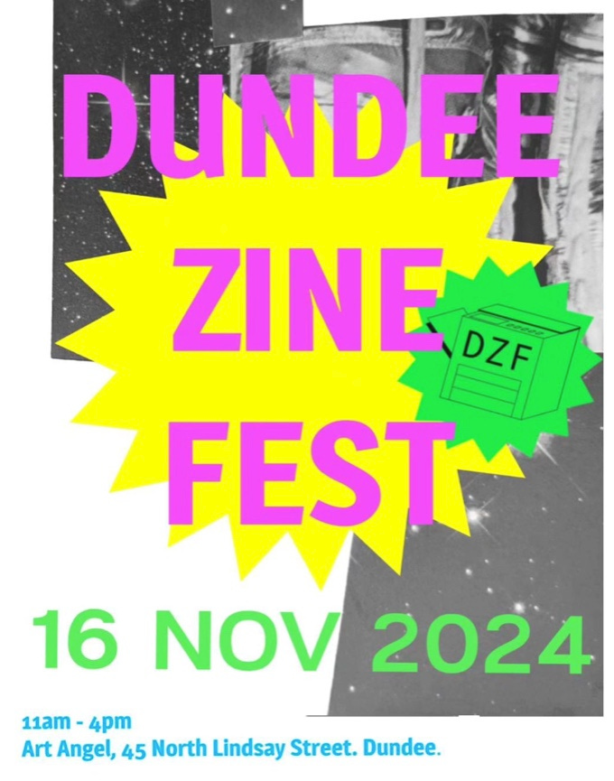 Dundee Zine Fest is on Saturday the 16th of November at Art Angel, 45 North Lindsay Street, Dundee. I hope to see you there. I know I've got some cool things that I'll be showing off, and if I've got cool things to show off, you can believe there'll be people there who have even cooler things to show you. I hope we'll see you there!